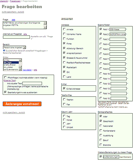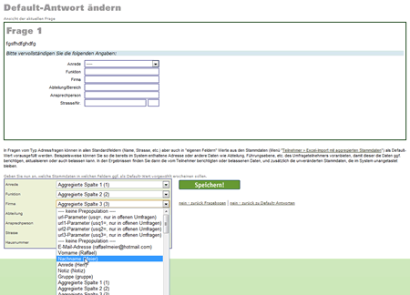 Vorausfüllung (Prepopulation) auf Basis von Stammdaten, die mit den Teilnehmerdaten (E-Mail-Adresse, etc.) vor Start der Befragung importiert wurden.
