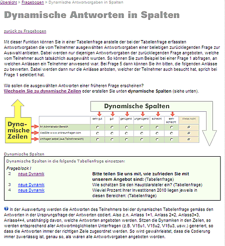 Ersatz der Antwortvorgaben oder Fragestellungen (Zeilen oder Spalten) durch freie Textantworten in vorherigen Fragen (dynamische Textsubstitution)