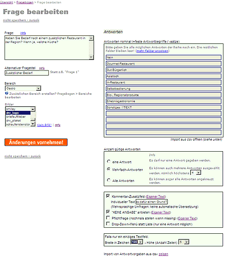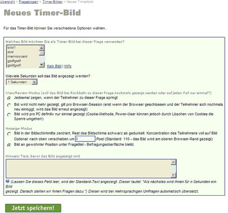 Hoch- und Download der Bilder, direkt auf dem Umfrageserver, daher hohe Anzeigegeschwindigkeit
