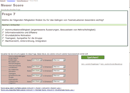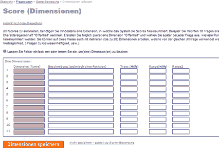Frei definierbare Score-Verhalten je nach Antwortabgabe in die unterschiedlichen Dimensionen