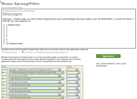 Filter für Fragen zeigen Fragen nur nach Erfüllung oder Nichterfüllung bestimmter frei definierbarer Bedingungen,auch aus anderen Fragen (dynamische Filter)